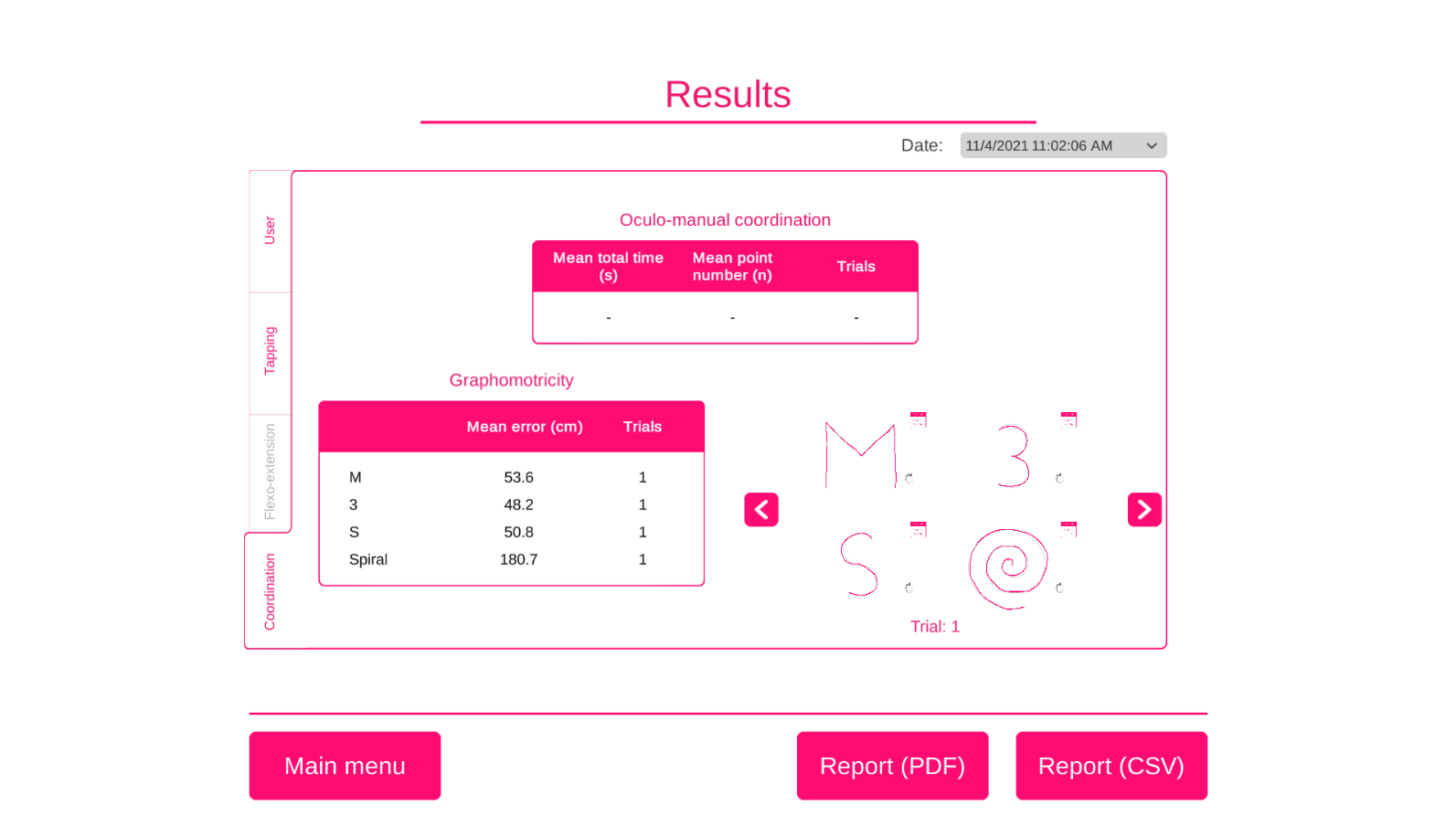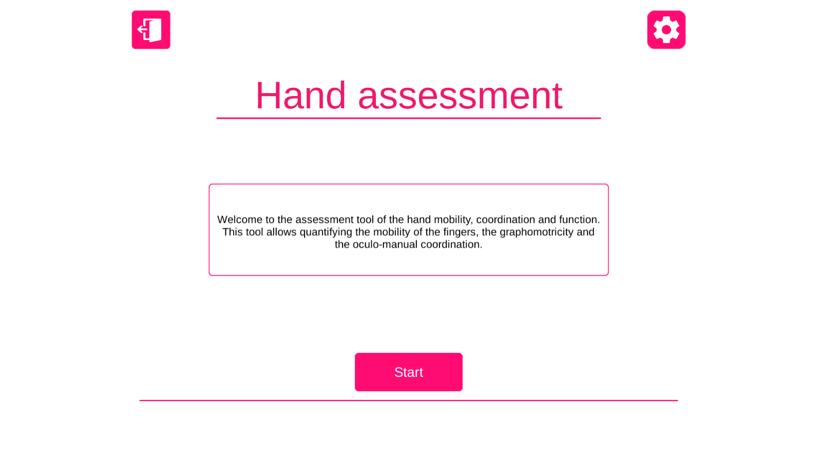 Hand mobility and coordination are indirectly assessed in tests of hand functions and grasping during functional tasks. Specific and accurate assessment of these abilities is specially challenging given the complexity of the hand anatomy and the lack of dedicated tests.